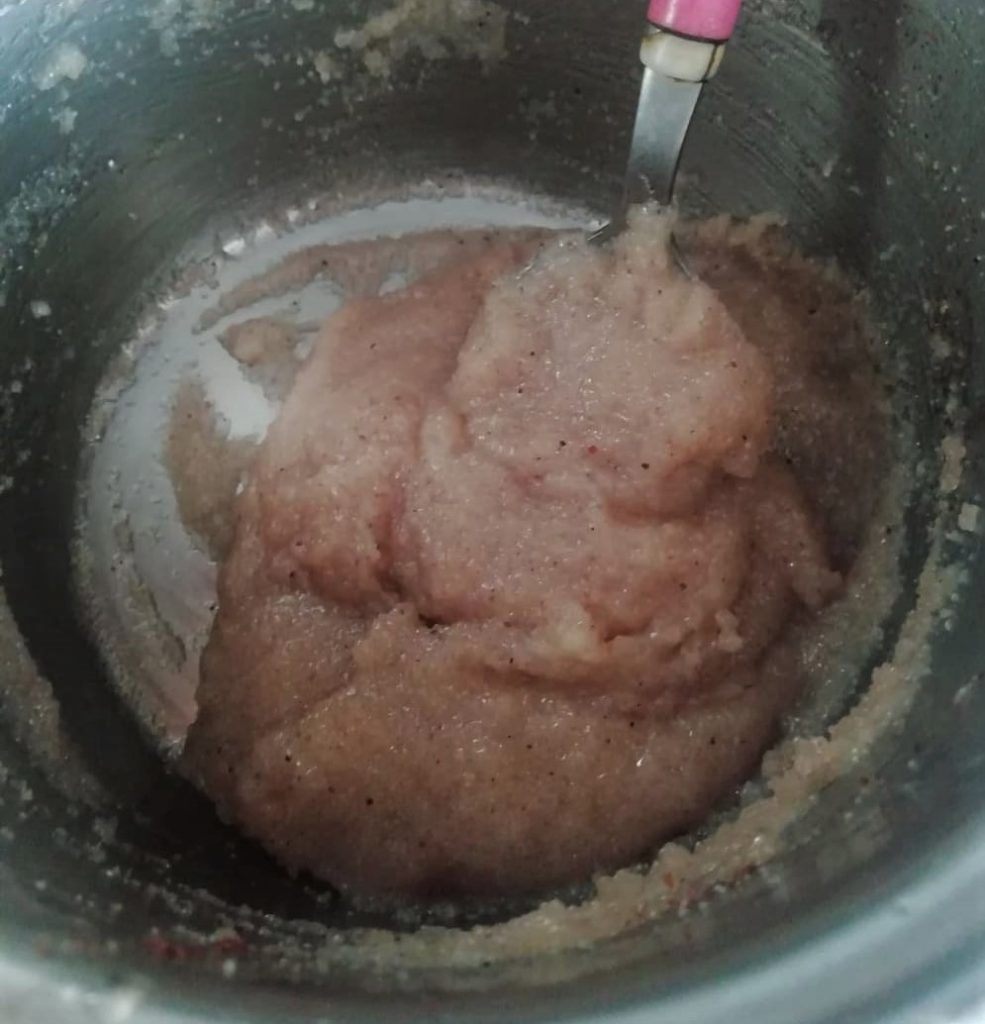 Wenn er gar ist, nehmen Sie ihn vom Herd, lassen Sie ihn abkühlen und pürieren Sie ihn zusammen mit dem Ei, bis eine glatte Creme entsteht, und stellen Sie sie beiseite.