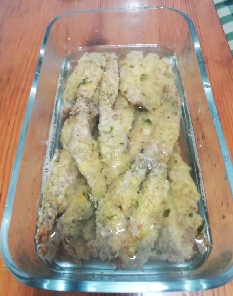 In diesem Rezept werden die marinierten gebackenen Heringe mit einer Mischung aus aromatisiertem Paniermehl paniert und dann gegart, daher sind sie ideal für diejenigen, die keine Fritturen mögen und eine leichte Bräunung bevorzugen. Außerdem ist die Marinade der Heringe leicht und delikat und ist sehr schmackhaft. Wenn Sie Heringe mögen, probieren Sie auch das Kartoffel- und Heringstörtchen, wirklich lecker.