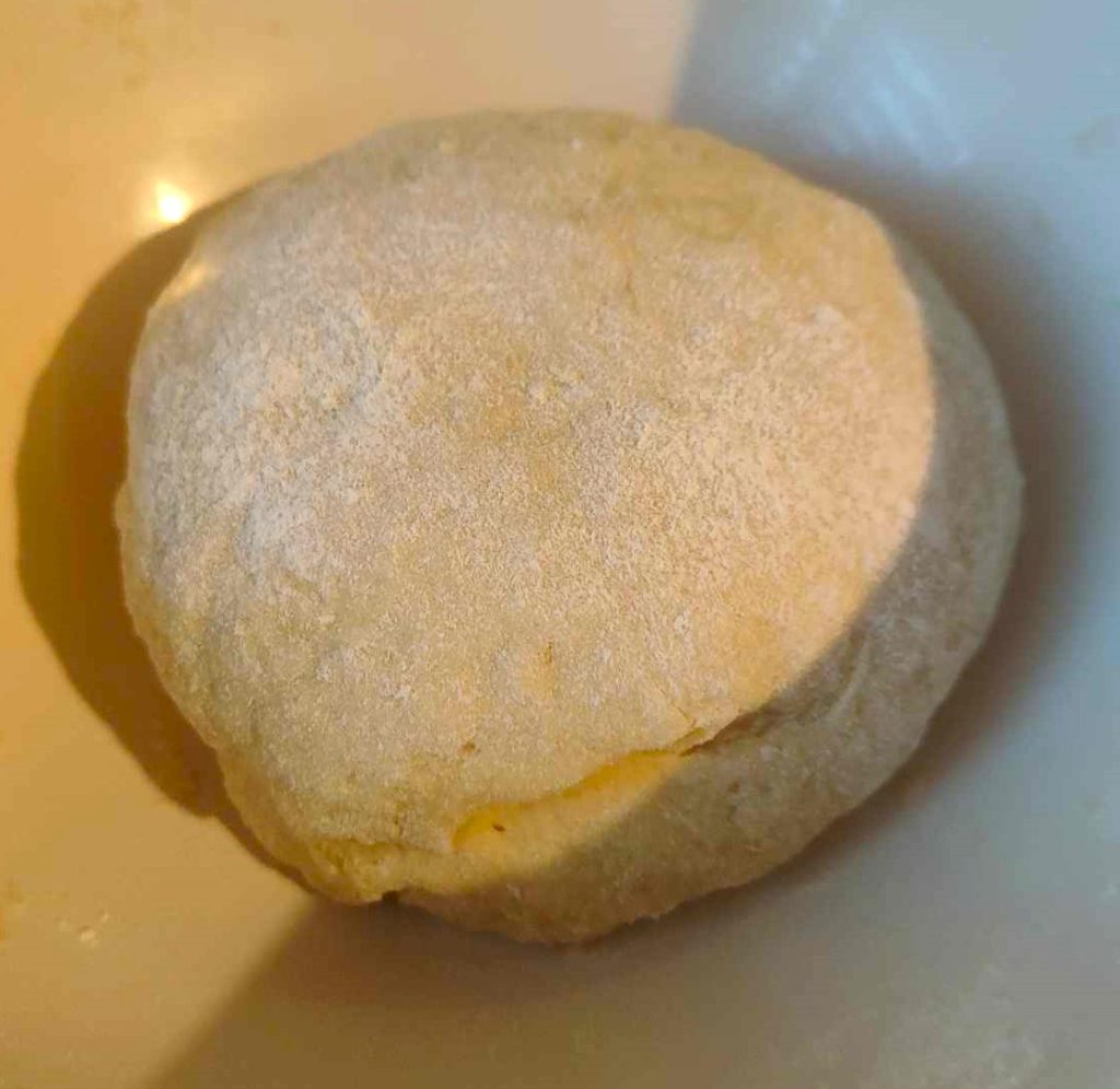 Gebt das Mehl, das Salz dazu und mischt die Masse in der Schüssel. Knetet, bis sie glatt und kompakt wird. Legt den Teig in die Schüssel, deckt ihn ab und lasst ihn bis zur Verdopplung gehen, das dauert etwa 2 Stunden.