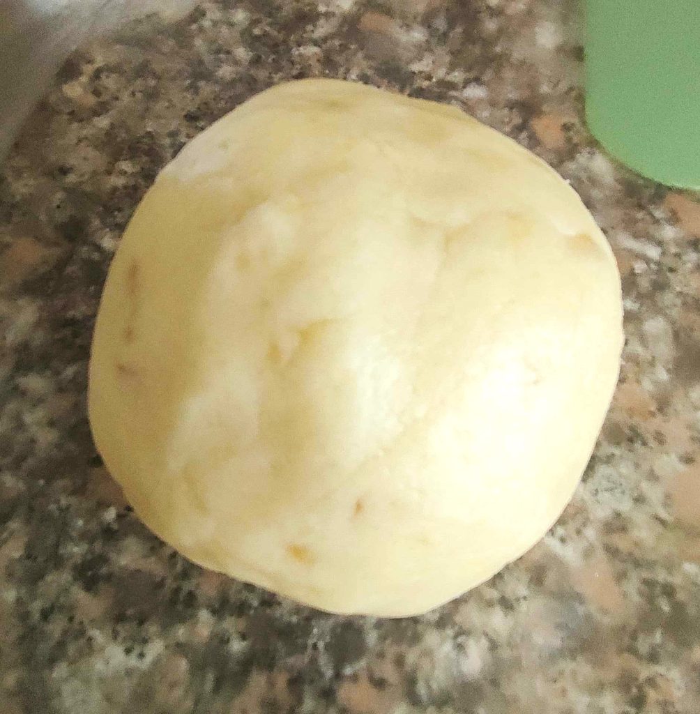 Kneten Sie die Zutaten in der Schüssel zu einer glatten und kompakten Masse, die nicht lange bearbeitet werden muss.