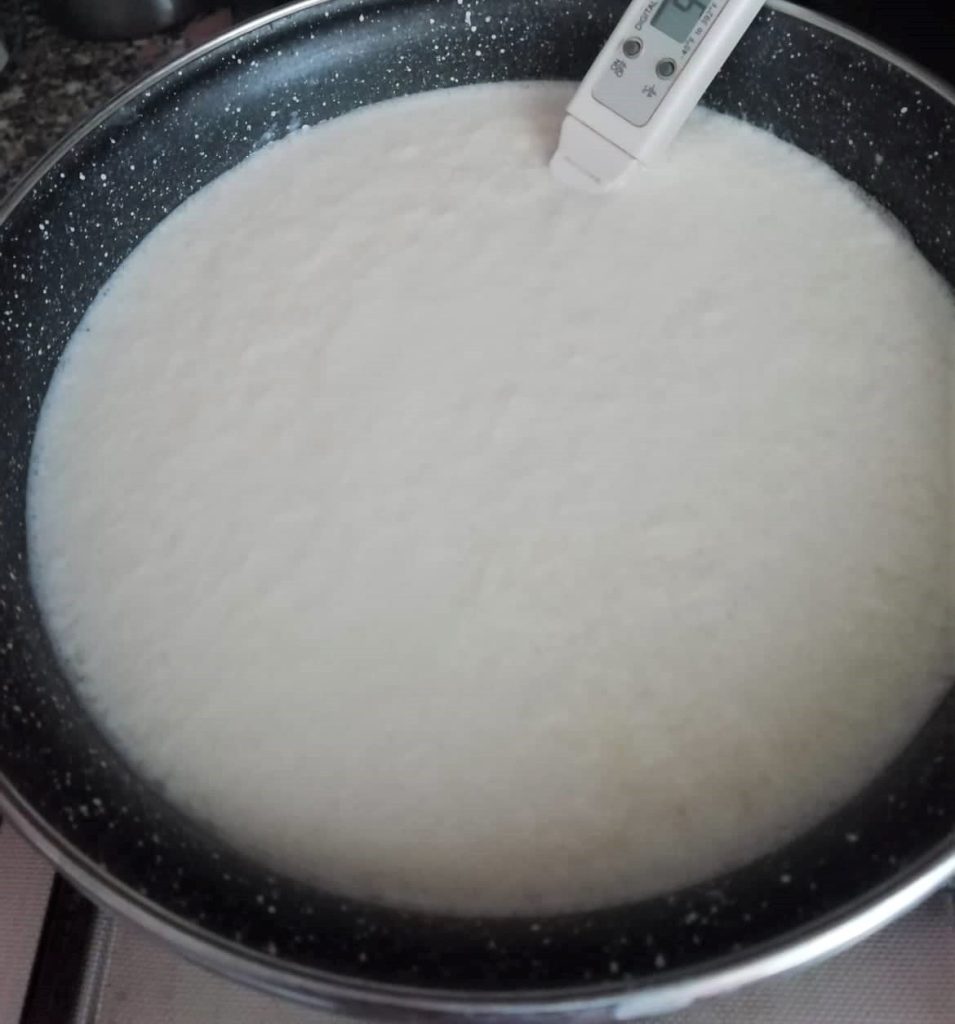 Erhitzen Sie die Mischung auf dem Herd auf maximal 88/90 Grad, und schalten Sie dann die Flamme aus.