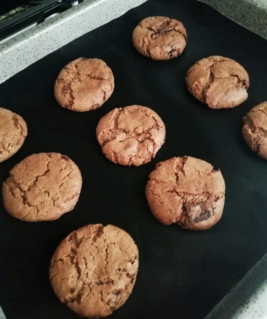 Heizen Sie den Ofen auf 160 Grad Umluft oder 170 Grad Ober-/Unterhitze vor und backen Sie die Kekse für 10-13 Minuten, sie sollten innen weich bleiben, wenn Sie diese Zeit überschreiten, werden sie knuspriger.
