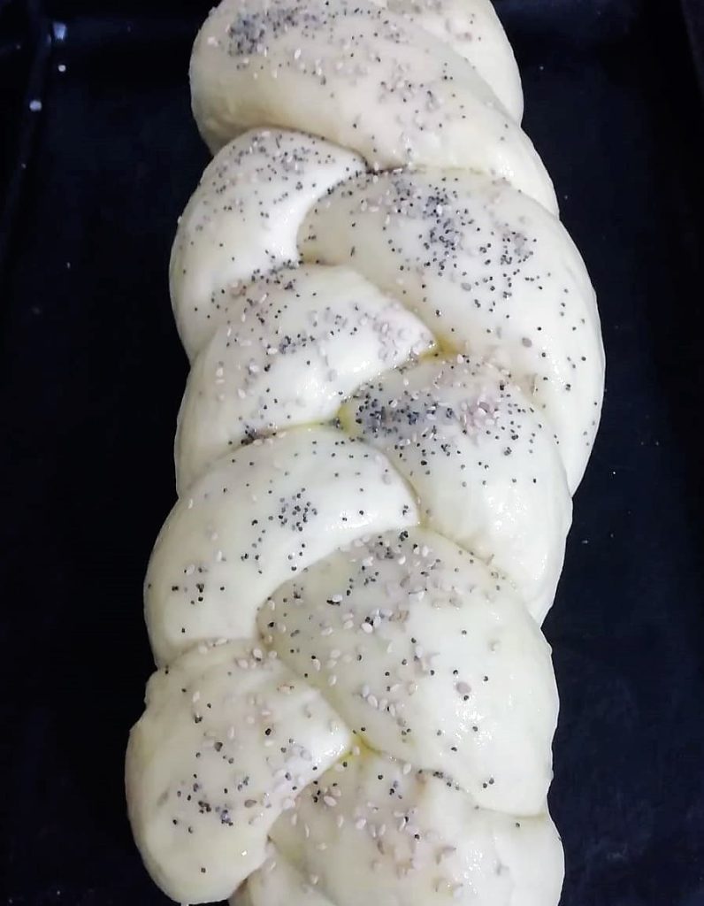 • Nach etwa 1 Stunde, je nach Raumtemperatur, ist der Zopf erneut aufgegangen.