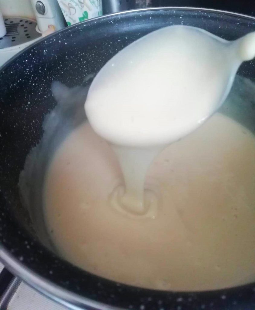Mischen Sie alle Zutaten gut, bis die Mischung glatt und flüssig ist. Ich füge eine Anmerkung hinzu, Sie können auch die Menge des Kappa-Karrageens auf 8 g reduzieren und den geriebenen Gemüsebrühwürfel durch Selleriesalz ersetzen. Diese beiden Zutaten sind entscheidend für den einzigartigen Geschmack dieser Soja-Mozzarella.