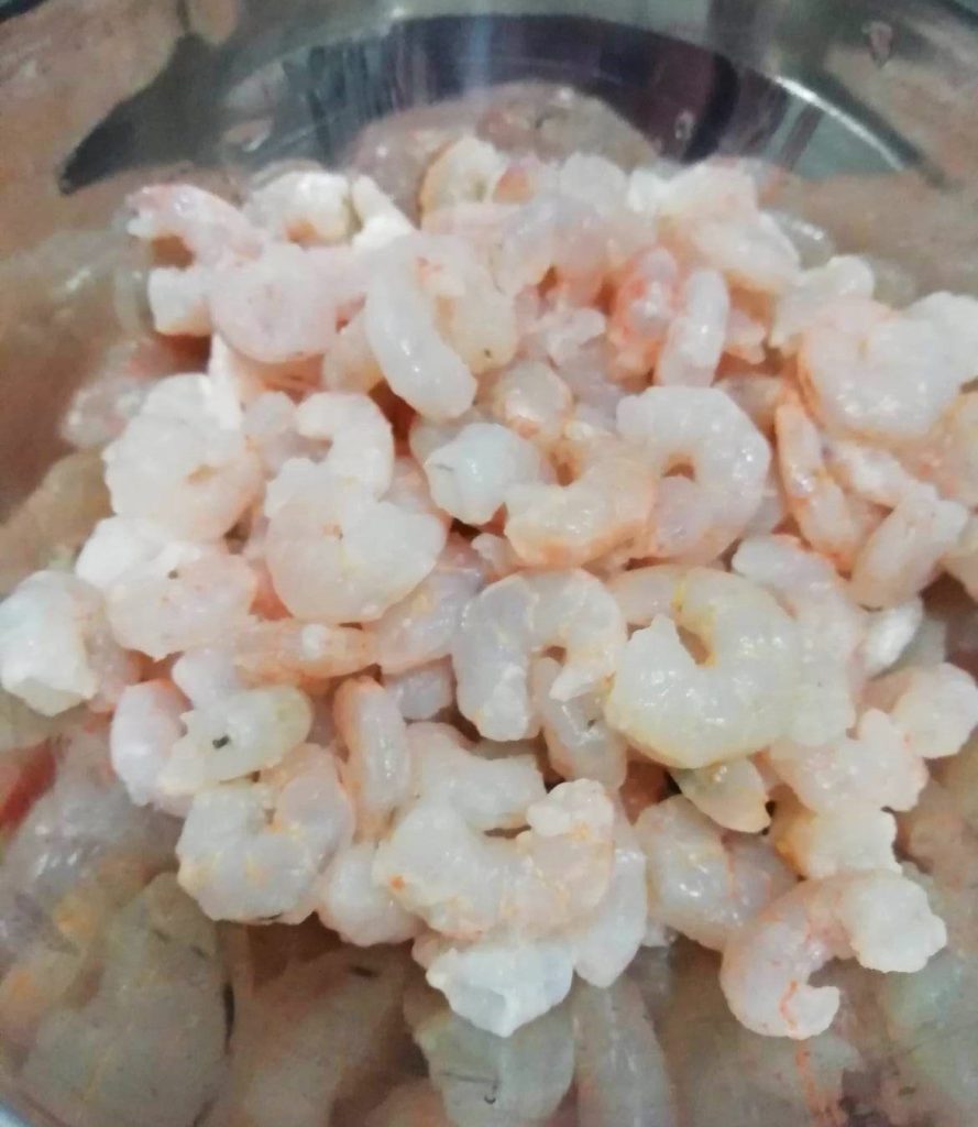 Waschen und schälen Sie die Garnelen, entfernen Sie den schwarzen Darm des Magens und legen Sie sie beiseite.