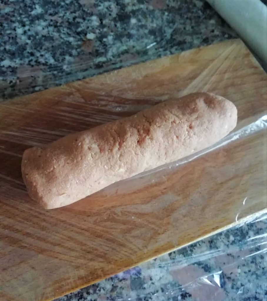 Wenn sie abgekühlt und die Frischhaltefolie entfernt ist, rollen Sie sie schnell durch ein dünnes Mehl und lagern Sie sie mindestens 2 Stunden im Kühlschrank, bevor Sie sie verzehren.