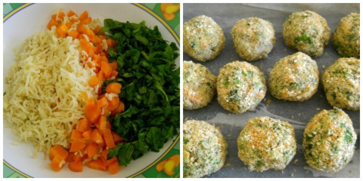 In einer großen Schüssel geben wir das Kartoffelpüree, die Karottenwürfel und die Spinatblätter. Fügen wir die gut abgetropfte Ricotta von eventueller Molke, den Käse, Salz, Pfeffer, Curry, den geriebenen Käse und das Paniermehl hinzu. Kneten wir alles, bis wir eine gut vermischte und sehr weiche Masse erhalten. Am Anfang scheint es, dass die Zutaten nicht zusammenhalten, aber die Feuchtigkeit, die von der Ricotta und dem Gemüse freigesetzt wird, ermöglicht es uns, einen leicht handhabbaren und kompakten Teig zu erhalten.