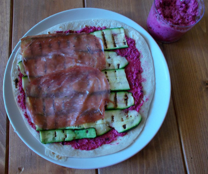 Die Piadine sind perfekt, um eine schnelle Mahlzeit für die Arbeit oder ein leckeres Abendessen in Gesellschaft vorzubereiten. Heute verwenden wir sie, um eine einfache und schmackhafte Fingerfood-Vorspeise zuzubereiten, nämlich gefüllte Wraps mit Salami, gegrillten Zucchini und Rote-Bete-Creme, eine sehr verlockende Kombination. Wenn Sie sich an der Zubereitung der Piadine selbst versuchen möchten, finden Sie hier das Rezept dafür. Wenn Sie Rote Bete lieben, können Sie mit der Creme Polenta-Häppchen begleiten oder Blätterteig füllen. Auf dem Blog finden Sie außerdem viele weitere Rezepte, um Piadine aus Vollkornmehl, geröstetem Weizenmehl, Hartweizengrieß und so weiter zuzubereiten.