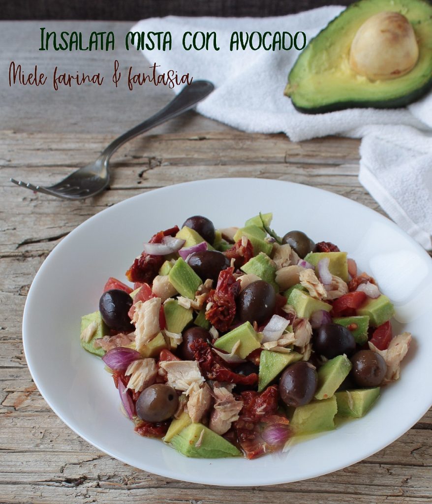 Der gemischte Salat mit Avocado ist eine frische, appetitliche, ziemlich schnelle und sehr einfache Zubereitung, die wir nach Belieben personalisieren können. Es handelt sich nicht nur um eine Beilage, sondern um ein Gericht, das Beilage und Hauptgericht in einem vereint, reichhaltig, aromatisch, das man mit zur Arbeit oder in der Freizeit mitnehmen kann. Der gemischte Salat mit Avocado enthält keine Eier, kein Gluten, keine Laktose, keine Milchprodukte oder Milchproteine; er kann auch lange im Voraus zubereitet und bis zum Verzehr im Kühlschrank oder an einem sehr kühlen Ort aufbewahrt werden.