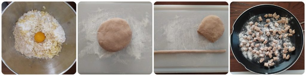Die glutenfreien Gnocchi mit Kastanienmehl sind bereit zum Kochen; oder Sie können sie etwa zehn Minuten an der Luft trocknen lassen, während das Wasser zum Kochen kommt.