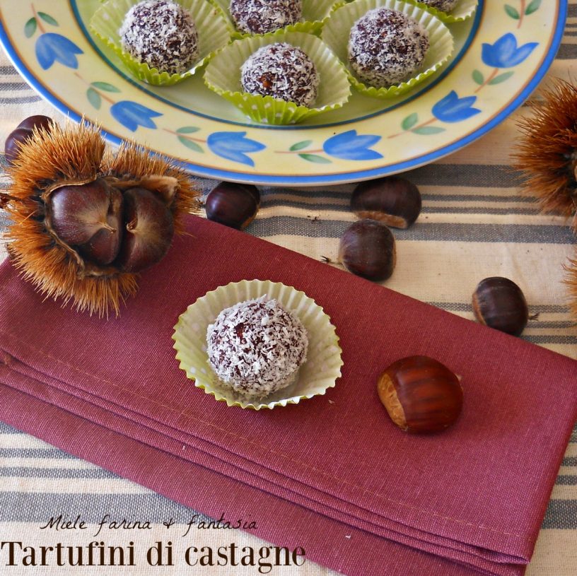 Die Kastanien-Pralinen mit Kakao und Kokos sind weiche und köstliche Pralinen ohne Eier und glutenfrei, die sprichwörtlich im Mund zergehen. Diese leckeren, auf gekochten Kastanien basierenden Süßigkeiten sind sehr einfach zuzubereiten, ideal als Nachspeise, als Geschenkidee oder um Tee oder Kaffee zu begleiten. Sie sind sehr lecker, aromatisch, chic und schön anzusehen und werden all Ihren Gästen gefallen. Ich empfehle, sie mindestens einen Tag im Voraus zuzubereiten, da sie Zeit brauchen, um den Geschmack zu entfalten und noch besser zu werden. Die Kastanien-Pralinen mit Kakao und Kokos sollten in einer Blechdose an einem kühlen Ort oder im Kühlschrank für 4/5 Tage aufbewahrt werden.