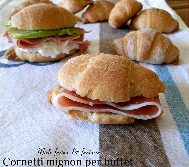 Die Mini-Croissants für Buffets ohne Ei und Butter werden mit einem leichten und sehr weichen Brioche-Teig hergestellt. Die Croissants sind einfach zuzubereiten und können dank ihres neutralen Geschmacks sowohl für süße als auch für herzhafte Zubereitungen verwendet werden. Sie sind ideal für dekorative Buffets bei Partys und als Begleitung zu Aperitifs. Sie können auch im Voraus zubereitet, eingefroren und bei Bedarf gebacken werden. Wir können sie mit allem füllen, was wir mögen; außerdem, dank ihrer Größe, sind sie auch ideal für das Frühstück oder den Nachmittagsimbiss von Kindern. Der Schritt mit dem „Vorteig“ ist notwendig, um ein Produkt zu erhalten, das sich lange weich hält.