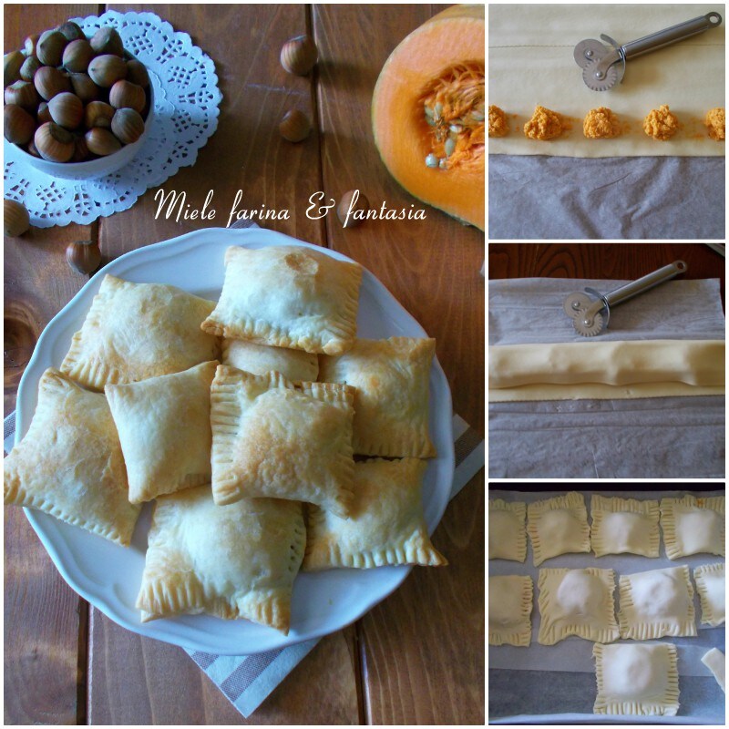 Wenn ihr auf der Suche nach einem einfachen, leckeren, aber auch mal etwas anderen Dessert seid, probiert die süßen Blätterteig-Tortelli gefüllt mit Kürbiscreme und Haselnüssen. Eine sehr interessante und harmonische Mischung, die man am Ende der Mahlzeit und mit dem Kaffee servieren kann.