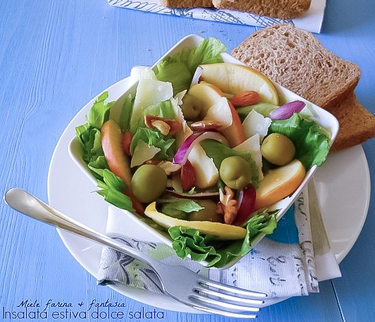 Der süße und salzige Sommersalat ist eine frische und bunte Zubereitung aus Gemüse, frischem Obst, Trockenfrüchten und Hartkäse. Es ist ein leichtes Gericht, sehr einfach, ideal im Sommer, wenn man wegen der großen Hitze nicht kochen möchte oder es einfach nicht will, und nicht unbedingt nur im Sommer. Der süße und salzige Salat kann als Beilage oder als Snack auch außer Haus serviert und nach eigenen Vorlieben und Bedürfnissen angereichert und personalisiert werden. Es ist das ideale Rezept, um nach den reichlichen Mahlzeiten der Feiertage zu entschlacken.