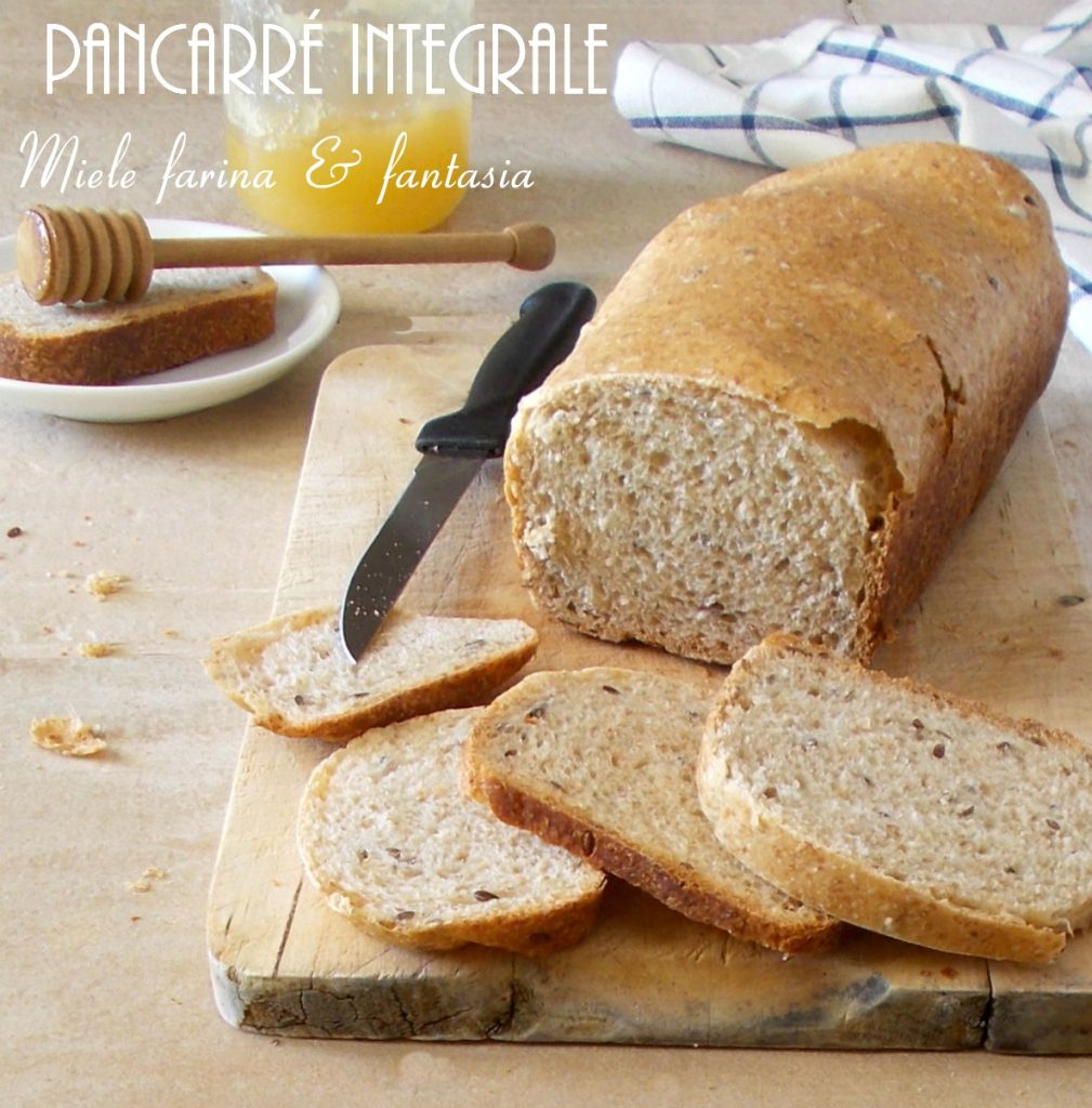 Das Vollkorn-Sandwichbrot aus Weichweizenvollkornmehl ist die neueste Kreation in meiner Küche. Es hat einen Geschmack mit einer rustikalen Note, die ihm gerade dieses Mehl verleiht. Die Krume ist sowohl kompakt als auch weich. Es ist außergewöhnlich zu Honig, besonders zu Kastanienhonig; oder um es zu Wurstwaren, frischen und gereiften Käsesorten, Sandwiches usw. zu servieren…Die Gehzeiten sind ziemlich lang, nicht nur wegen des Sauerteigs, sondern auch wegen der doppelten Gärung, die ihm die charakteristische Weichheit verleiht. Die Zubereitung dieses duftenden und geschmackvollen Sandwichbrots ist sehr einfach. Man kann es sowohl von Hand als auch mit der Küchenmaschine kneten und der Teig ist kompakt, leicht und angenehm zu verarbeiten.