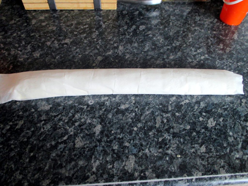 • Beginne den Teig von der Längsseite aus aufzuwickeln, um eine gleichmäßig dicke Rolle zu schaffen, die fest gewickelt ist, ohne Lücken im Inneren.