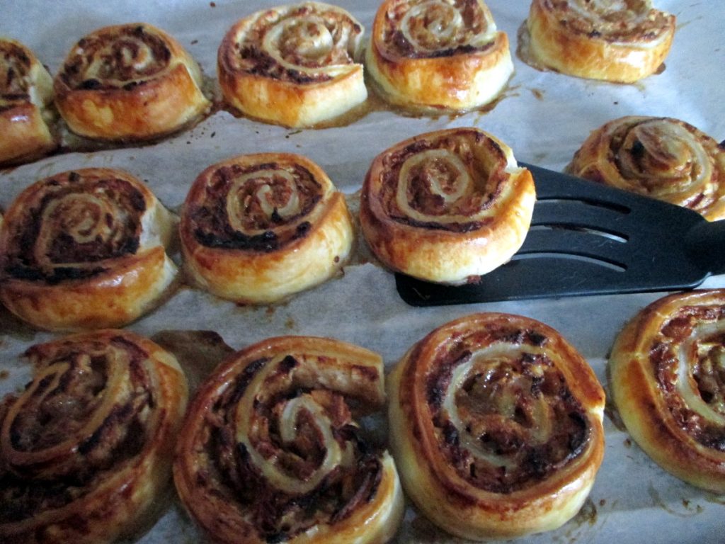 • Lege die Schnecken auf ein mit Backpapier ausgelegtes Blech und bestreiche sie mit Pflanzenmilch, auch an den Rändern aller Schnecken.