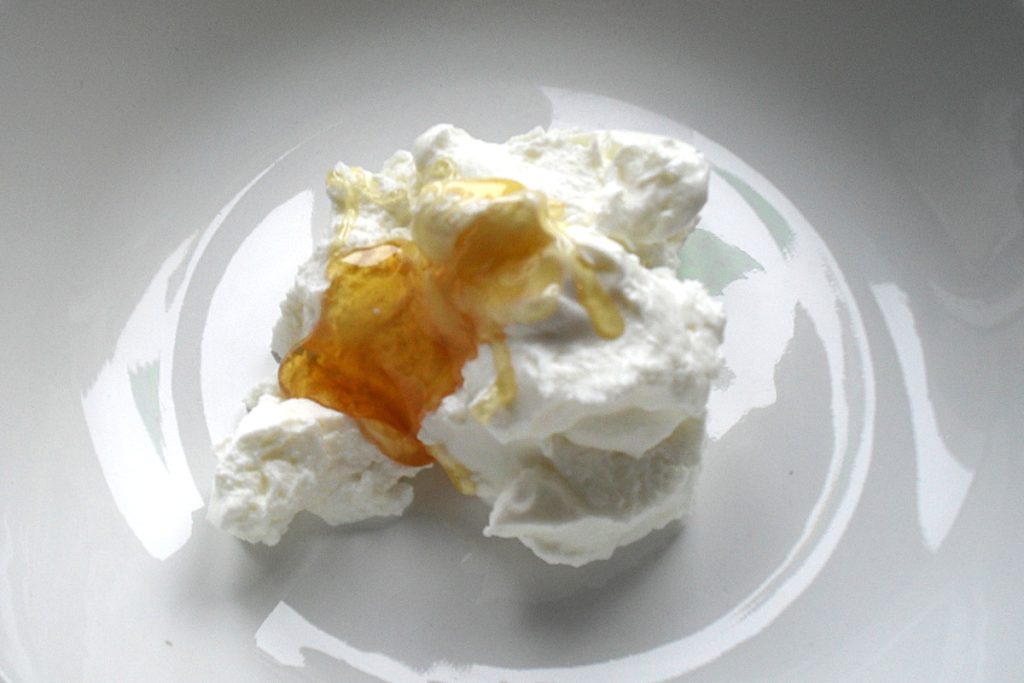 In der Zwischenzeit mische den Joghurt gut mit 2 Teelöffeln Agavensirup, um eine glatte Creme zu erhalten. Wenn du möchtest, kannst du dies im Voraus tun und die Joghurtcreme in den Kühlschrank stellen, um sie besser fest werden zu lassen.