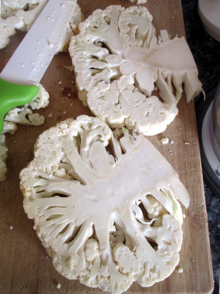 - 1 Blumenkohl (groß genug, um 4 große Scheiben zu erhalten)