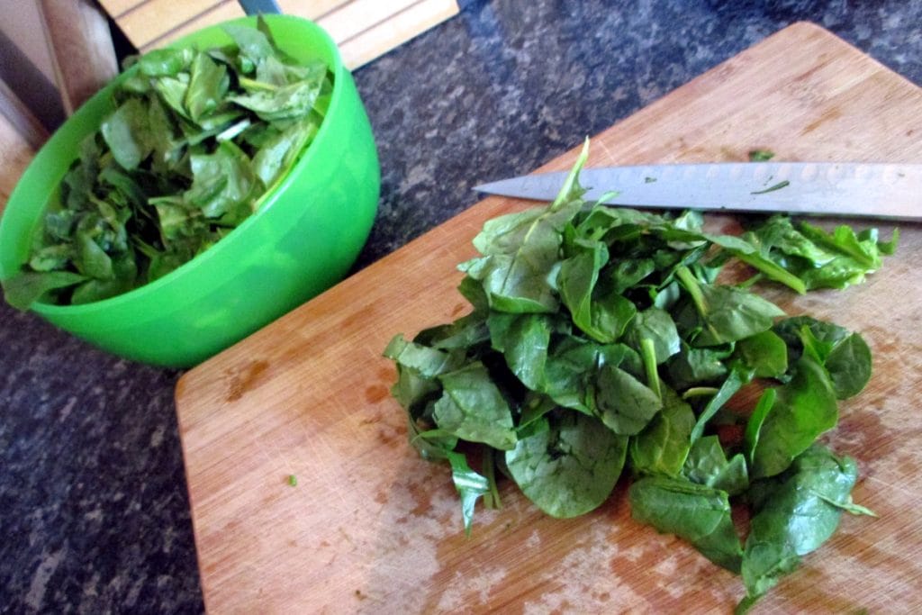 Wasche den Spinat, lasse ihn gut abtropfen und schneide ihn kurz vor der Verwendung grob.