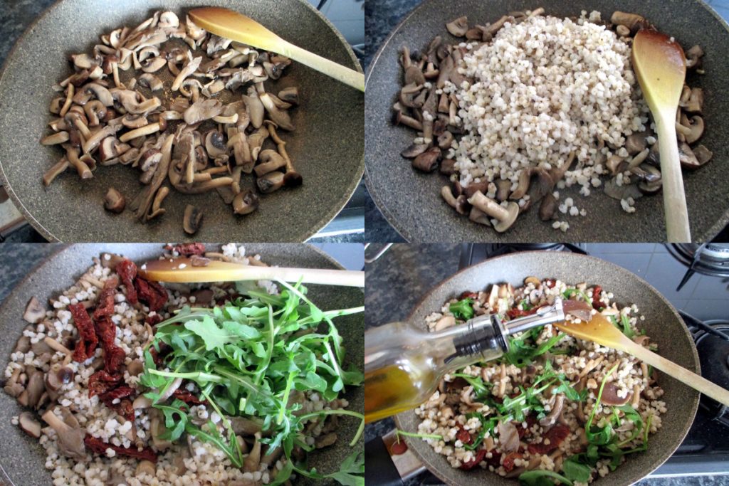 Sorghum mit gemischten Pilzen, Rucola und getrockneten Tomaten, Mangia senza Pancia
