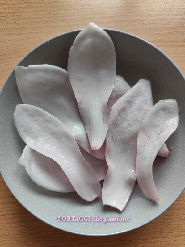 HINWEIS: Für dieses Rezept ist es ratsam, die weniger perfekten Blütenblätter zu verwenden, um Abfälle zu vermeiden. Es ist vorzuziehen, sie roh zu genießen, um ihren Geschmack, ihre Frische und ihre zarte Knusprigkeit optimal zu schätzen.IN DER KÜCHE