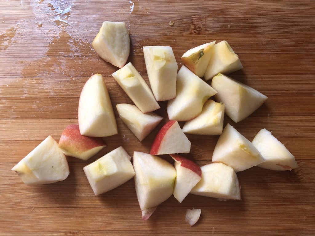 • Den Apfel waschen, das Kerngehäuse entfernen und in Spalten schneiden, ohne ihn zu schälen.