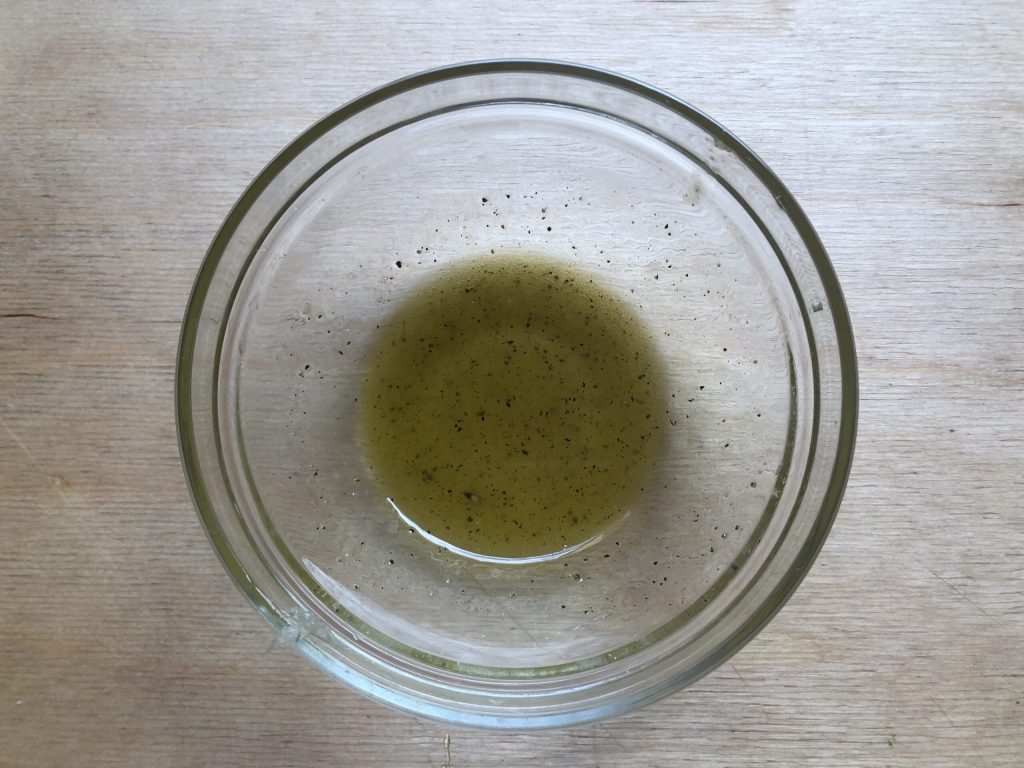 In einer Schüssel vier Esslöffel Öl, ein paar Teelöffel Zitronensaft, einen Esslöffel Honig, eine großzügige Prise Salz und eine gute Prise schwarzen Pfeffer geben und sorgfältig mischen, bis eine homogene Emulsion entsteht.