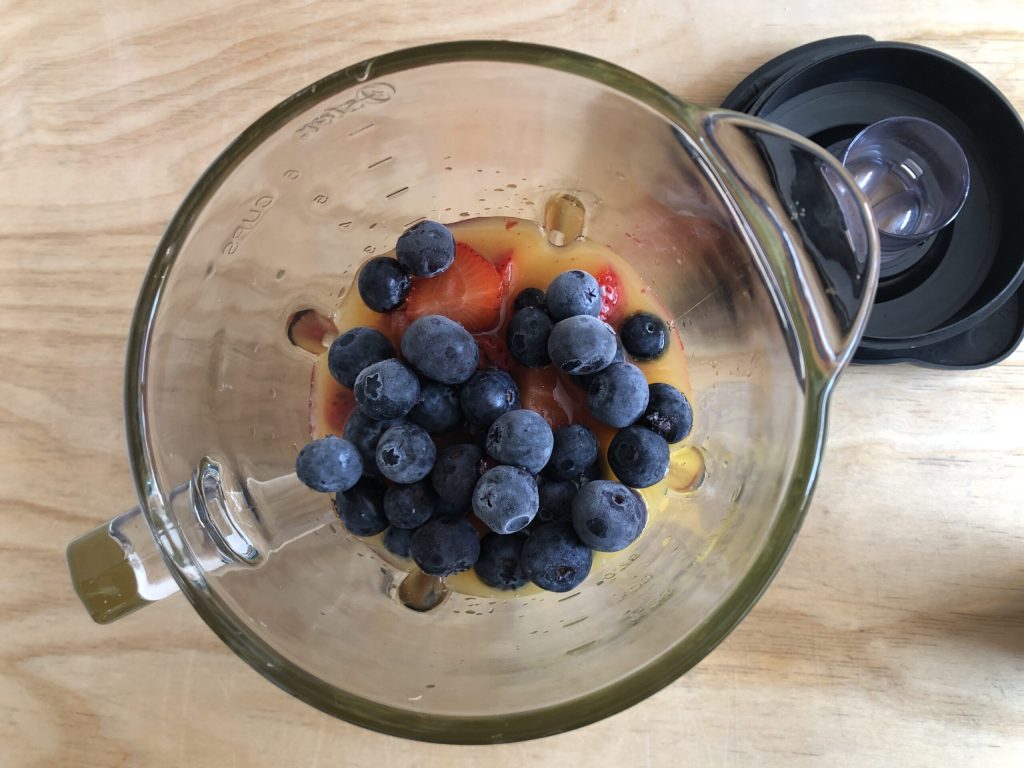 Bevor Sie diesen Smoothie mit Waldfrüchten zubereiten, denken Sie daran, die Blaubeeren für einige Stunden in den Gefrierschrank zu legen. Ich friere sie normalerweise am Abend vorher ein.