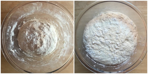 Den Teig in der Schüssel lassen, reichlich mit Mehl bestäuben und abgedeckt für ein paar Stunden an einem warmen und zugluftfreien Ort gehen lassen (perfekt ist der ausgeschaltete und geschlossene Ofen).