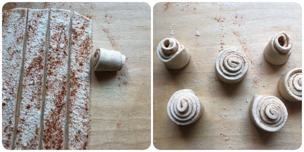 Die Schnecken nach und nach in eine mit Backpapier ausgelegte Backform legen und dabei mit etwas Abstand zueinander platzieren, denn beim zweiten Gehen werden sie wachsen und zusammengehen. Abdecken und weitere zwei Stunden gehen lassen.