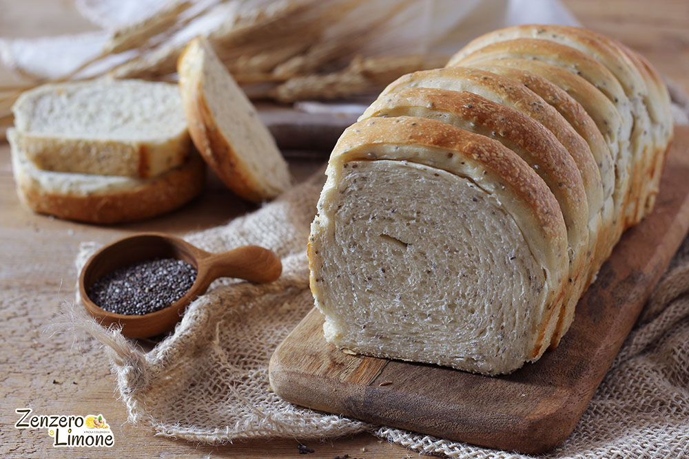 Heute machen wir uns die Hände schmutzig und bereiten ein leckeres Chia-Samen-Brot zu. Es handelt sich um ein einfaches Weißbrot, dessen Teig ich mit diesen kleinen Samen angereichert und in einer Kastenform gebacken habe. Eine Art Kastenbrot. Es hat eine dünne, knusprige Kruste und viel weiche Krume im Inneren und ist auch perfekt für Crostini. Keine Angst… es ist einfach! Aber natürlich nicht schnell!