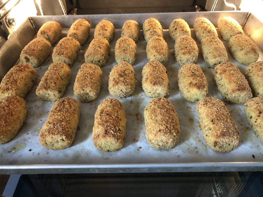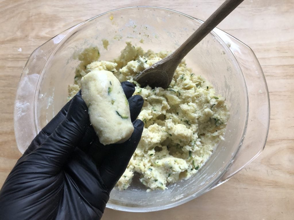 Zubereitung der gebackenen Kartoffel-Zucchini-Kroketten
