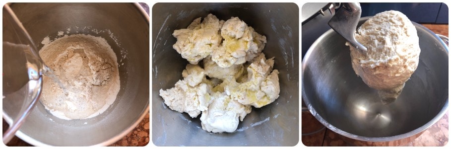 Um den Teig dieser Grissini zuzubereiten, können Sie die Küchenmaschine verwenden (wie ich es gemacht habe) oder Sie können ihn auch von Hand kneten, indem Sie die Zutaten zuerst in einer Schüssel und dann auf der Arbeitsfläche verarbeiten.
