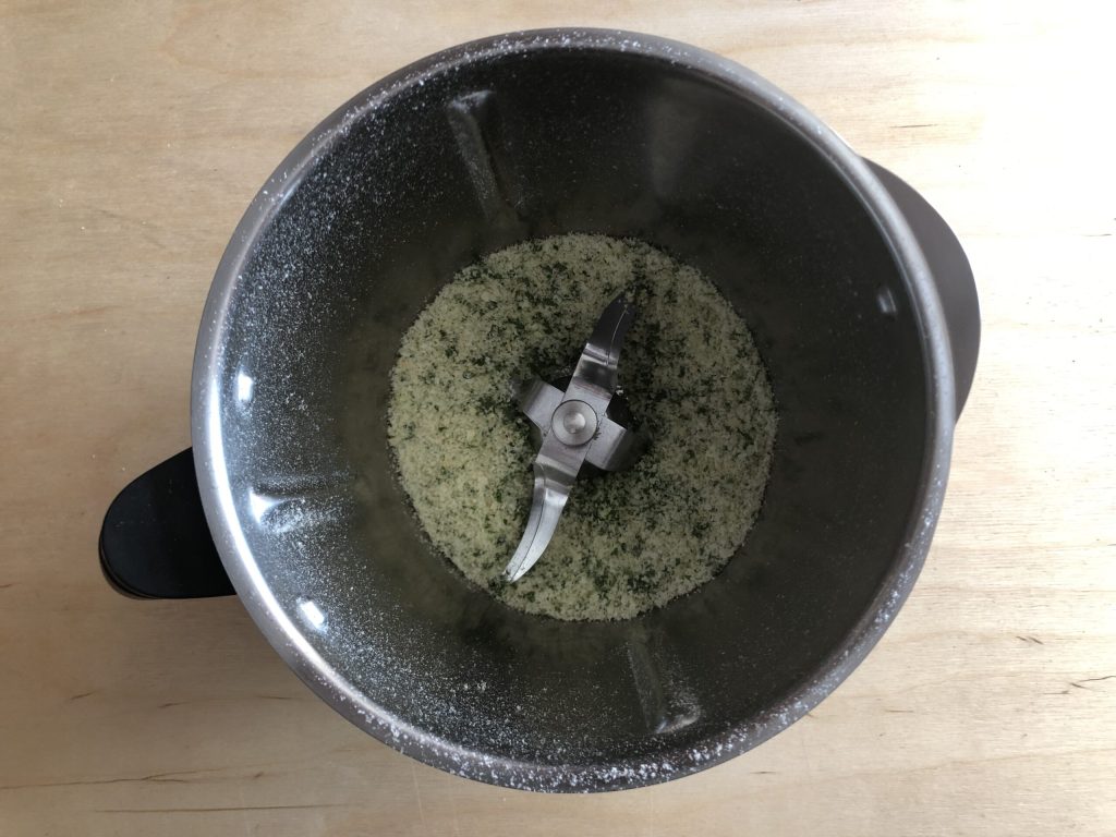 Alles zerkleinern (ich habe es ziemlich fein zerkleinert, aber ihr könnt es auch in gröbere Krümel zerlegen, wenn ihr mögt).