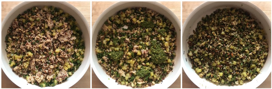 Zubereitung des Getreidesalats mit Kartoffeln