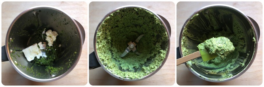 Zum Schluss den Robiola hinzufügen und erneut mixen, bis eine schöne, weiche und homogene Creme entsteht. Probieren Sie sie und würzen Sie mit Salz, falls nötig.