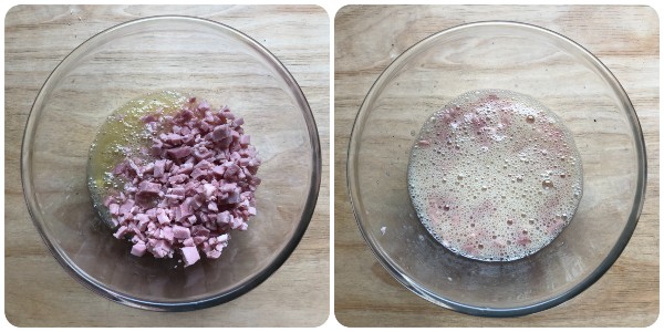 Den gewürfelten Schinken hinzufügen und mischen.
