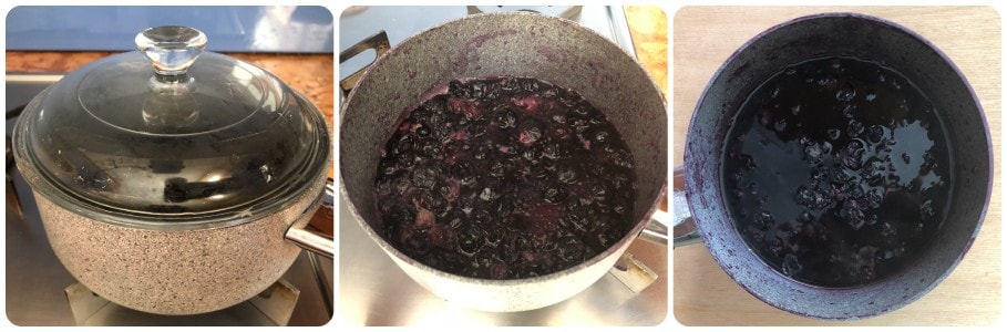 Auf den Herd stellen, den Deckel aufsetzen und 5 Minuten bei mittlerer bis niedriger Hitze köcheln lassen. Nach dem Kochen sollten die Heidelbeeren sehr weich sein. Den Herd ausschalten und die Heidelbeeren abkühlen lassen.