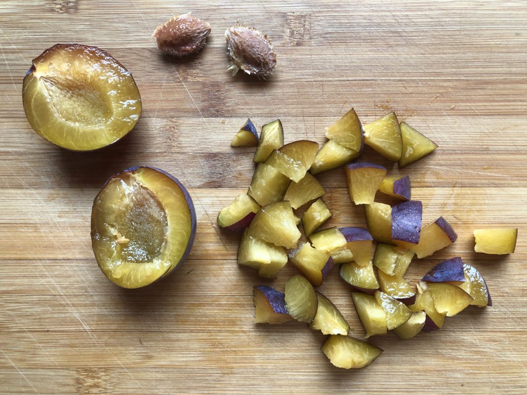 In der Zwischenzeit die Mandeln grob mit einem Messer hacken und nach dem Kochen zu den Früchten geben.