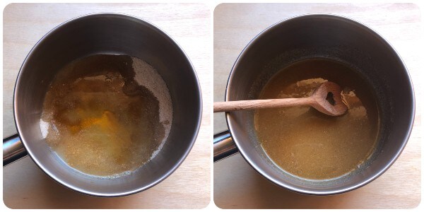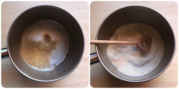 • Den Zucker und das Ingwerpulver in einen Kochtopf geben und vermischen.