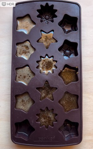 • Fünf Minuten kochen lassen, dann die Hitze ausschalten und die Mischung in Silikonformen gießen. Die Formen für Pralinen sind perfekt. Wenn ihr keine habt und sie kaufen möchtet, findet ihr sie, indem ihr HIER klicken.