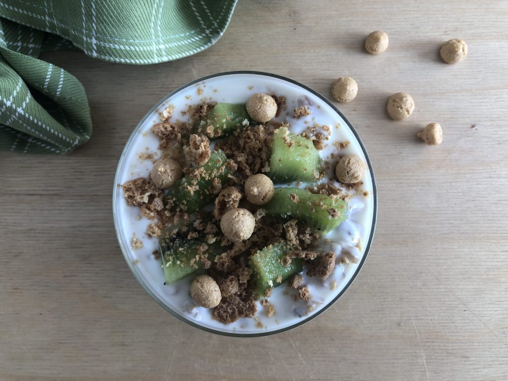 Wenn Sie ein leichtes, gesundes, schnell zuzubereitendes und überraschend leckeres Dessert suchen, ist dieser Joghurtbecher mit Kiwi, Amaretti und Walnüssen genau das Richtige für Sie. Die samtige Süße des Joghurts kombiniert sich perfekt mit der säuerlichen Note der Kiwi und dem knackigen Touch der zerbröselten Amaretti und gehackten Walnüsse. Eine gelungene Mischung aus Aromen und Konsistenzen, die beim ersten Bissen begeistert. Und wollen wir darüber sprechen, wie gut es ist? Die Kiwi, der Star dieses Rezepts, ist ein natürlicher Verbündeter für unser Wohlbefinden, da sie eine wahre Fundgrube an Vitamin C, Antioxidantien und Ballaststoffen ist. Die Walnüsse bereichern den Becher mit ihren Omega-3- und Omega-6-Fettsäuren, die gut für Herz und Gehirn sind. Und das Beste daran ist, dass die Zubereitung nur wenige Minuten dauert und keinerlei Kochen erfordert. Ideal für ein gesundes Frühstück, einen leichten Snack oder ein improvisiertes Dessert, wenn Sie Lust auf etwas Süßes haben. Also… probieren Sie es aus und entdecken Sie, wie wenige Zutaten sich in ein kleines Geschmackserlebnis verwandeln können!