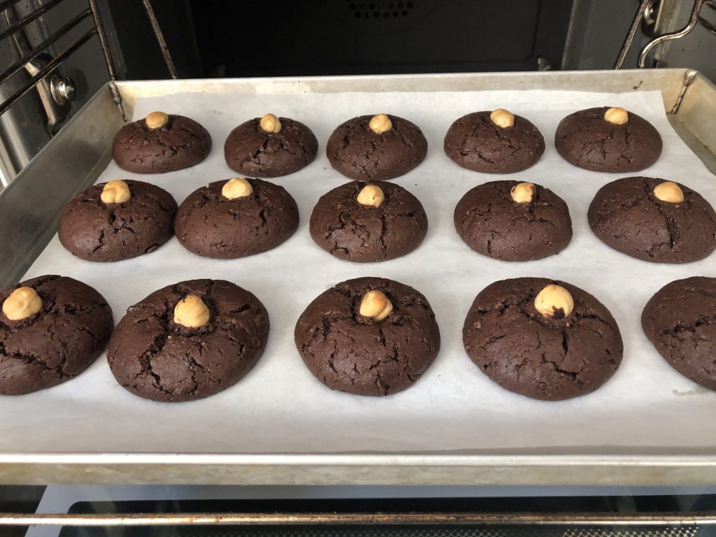 Die Kakao- und Haselnusskekse im vorgeheizten Backofen bei 180° für 15 Minuten backen.