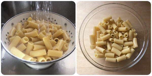 Zubereitung der kalten Pasta mit Thunfisch