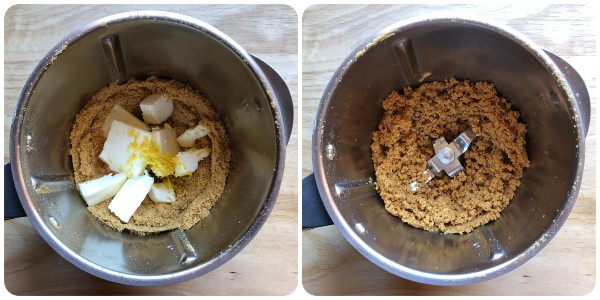• Die Digestive-Kekse in einen Mixer geben und fein mahlen. Ich habe den Thermomix (10 Sek. Stufe 7) verwendet, aber jeder andere Küchenroboter ist auch in Ordnung.