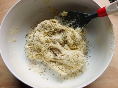 Die Masse in eine Schüssel geben und eine gute Prise Kräuter der Provence hinzufügen.