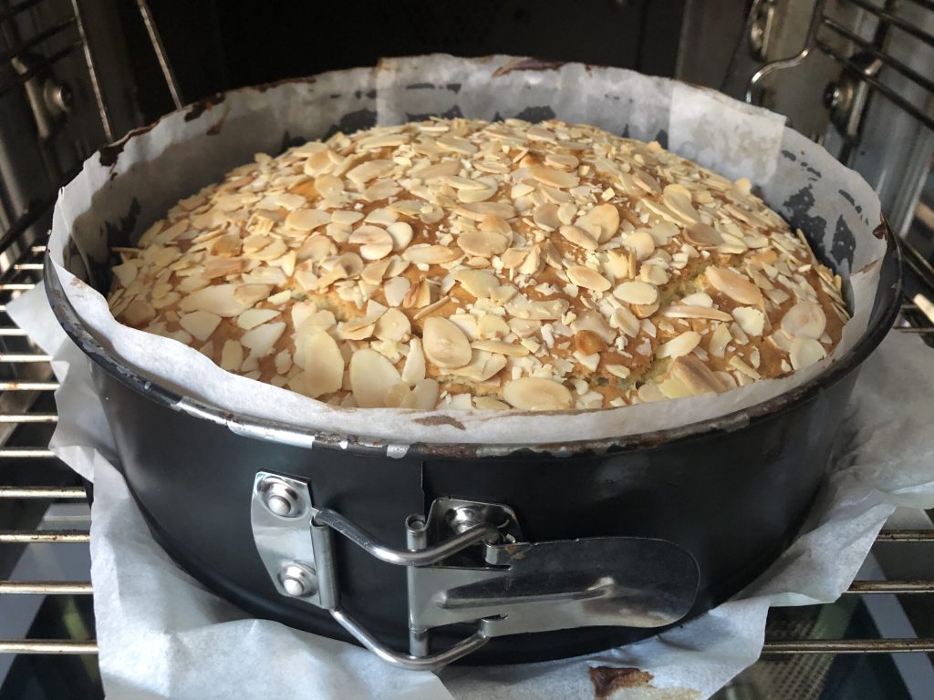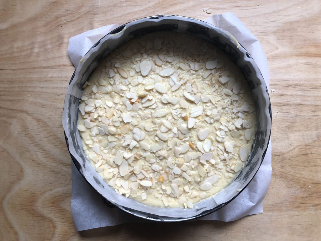• Zum Schluss die Mandelblättchen gleichmäßig auf der Oberfläche verteilen.