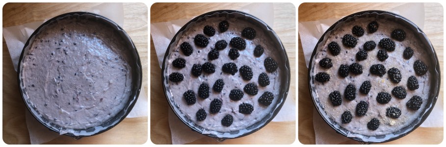 Den Kuchen mit Brombeeren im vorgeheizten statischen Ofen bei 180° etwa 45/50 Minuten backen. Mit einem Zahnstocher prüfen, ob er tatsächlich gar ist, und gegebenenfalls einige Minuten hinzufügen.