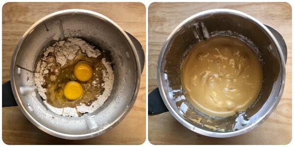 Dann alle anderen Zutaten hinzufügen (Öl, Milch, Limoncello und Eier) und zu einem glatten und cremigen Teig ohne Klumpen verrühren. Mit dem Thermomix 30 Sekunden auf Stufe 5.